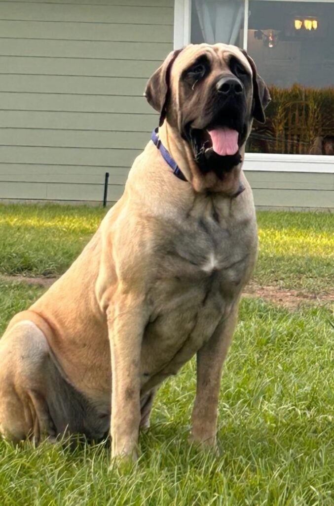 We love our dogs. They have been a staple of our of our family’s environment for years, and add an excitement to life that nothing else could rival! Beyond being breeders, we simply enjoy the fulfilment of being dog owners. All of our dogs are very well socialized. We ensure that they are raised around lots of children, strangers, and other dogs. Being English Mastiffs, they take to this very quickly and easily. Below you will see the parents of your puppies! Enjoy their striking looks, and be sure to read a little bit about them. They’re all very different!